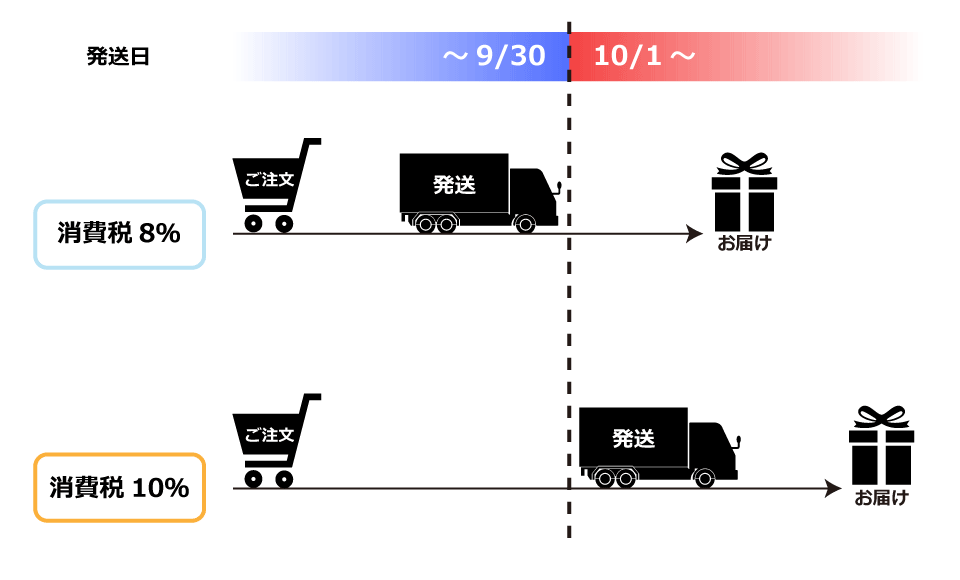 また、旧税率でご注文、お見積り頂いた場合であっても、発送日が10月1日以降になる場合は新税率が適用され、増税分を発送後にご請求させて頂く場合がございます。